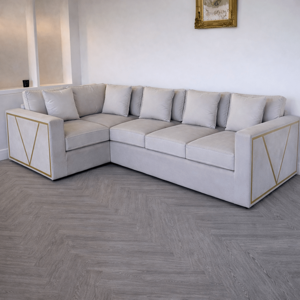 A defining feature of the Milano Sofa is its striking strip detailing, available in silver, black, or gold. This distinctive accent introduces a touch of glamour to its minimalist silhouette, transforming a simple shape into a work of modern artistry. The contrast between the streamlined structure and the bold metallic detailing creates a visual balance that feels both refined and daring.