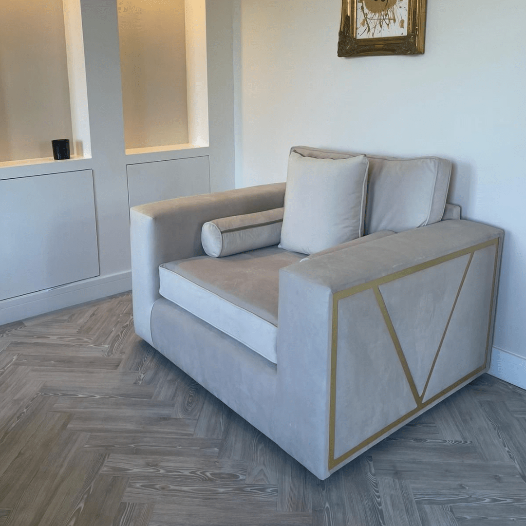 A defining feature of the Milano Sofa is its striking strip detailing, available in silver, black, or gold. This distinctive accent introduces a touch of glamour to its minimalist silhouette, transforming a simple shape into a work of modern artistry. The contrast between the streamlined structure and the bold metallic detailing creates a visual balance that feels both refined and daring.